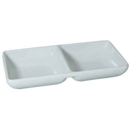 NEW MELAMINE DOUBLE MINI SQUARE SAUCE DIP ORIENTAL SERIES 14.5X7X2.5CM WHITE ILSA