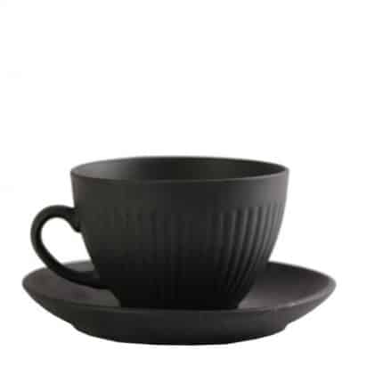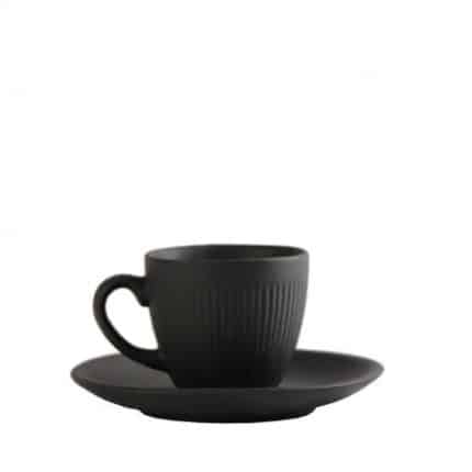 DISCONTINUED 2025 GOBI SAND STONEWARE CUP AND SAUCER 8CL BLACK ESPIEL