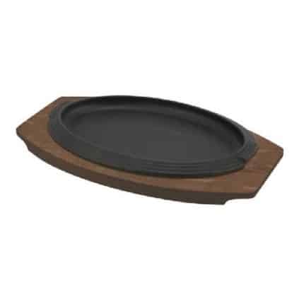 OVAL ENAMELLED CAST-IRON PLATE WITH WOODEN TRAY 28X19CM ILSA ITALY