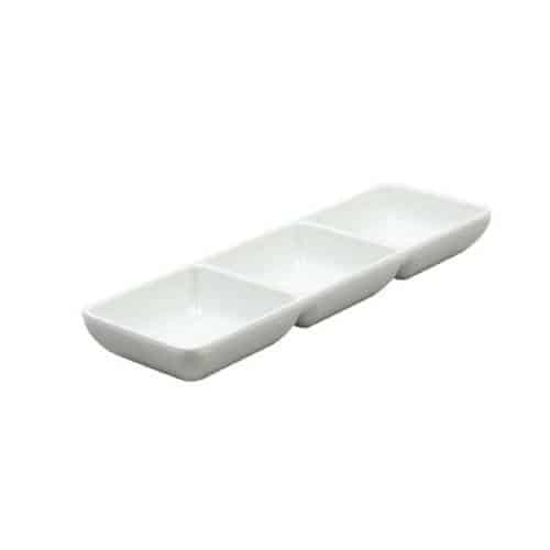 New Melamine Triple Mini Square Sauce Dip Oriental Series 22x7x2 5cm White Ilsa