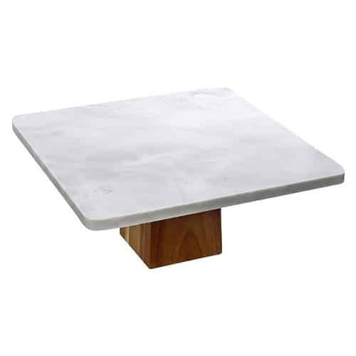 PLATTER SQUARE MARBLE WHITE FOOTED ACACIA STAND 30X11CM ESPIEL