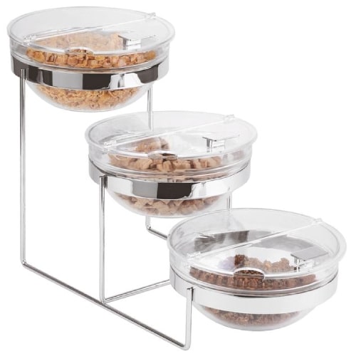 BY ORDER BUFFET STAND CHROME PLATED 61X24X35CM WITH THREE BOWLS AND COVERS PADERNO