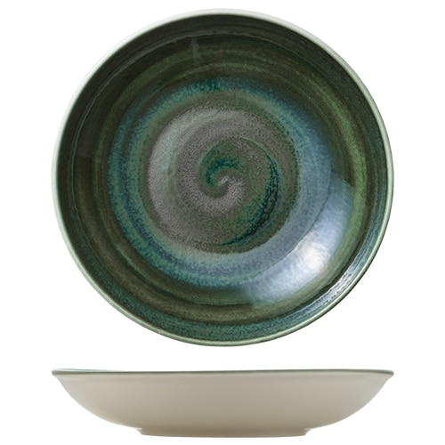 VITRIFIED PORCELAIN COUP PLATE DEEP ROUND 28CM AVOCADO HEART SOUL by BAUSCHER GERMANY