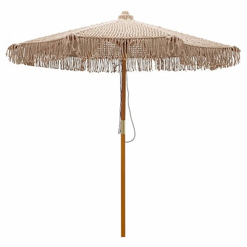 BY ORDER WOODEN UMBRELLA MACRAME FRINGE ROUND 250CM UNIQUE